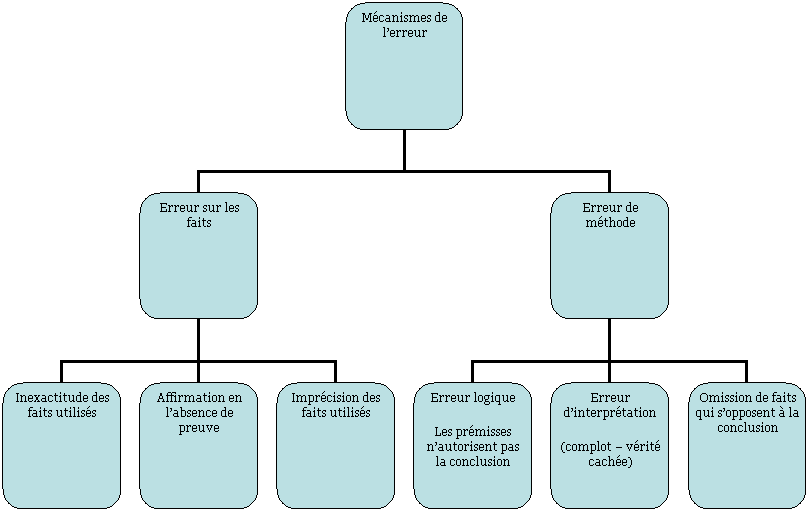 L’usage de données ou de faits non établis (A pour absence - je n'ai retenu qu'une très faible partie de ce type d'erreur)